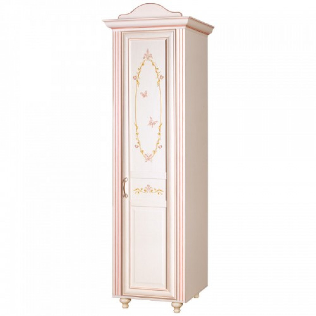 Фасады: МДФ, декор – кремовый белый, рисунок, патина, стекло с фацетом и рисунком