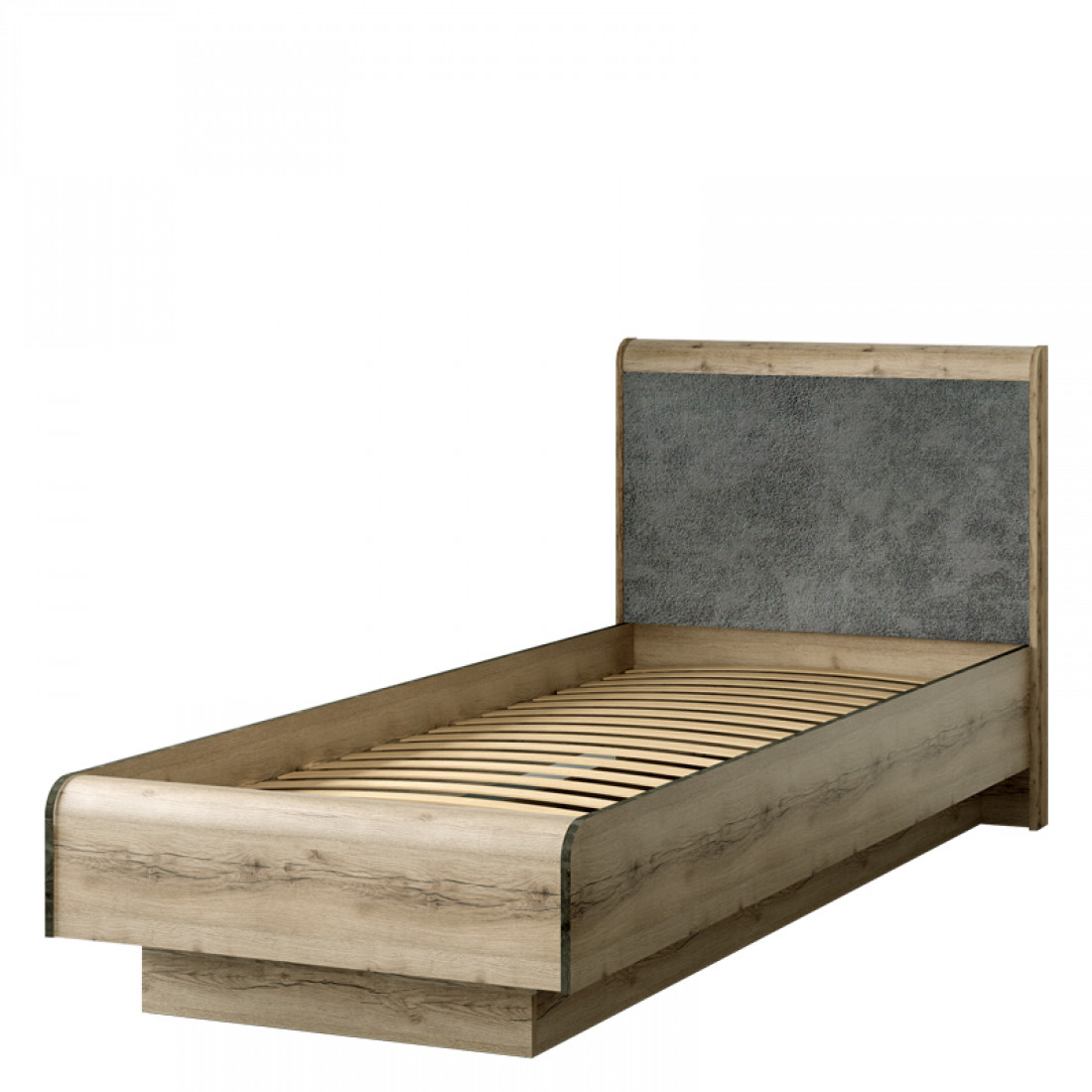 Корпус: ДСП, декор – дуб делано. Основание кровати – ламели