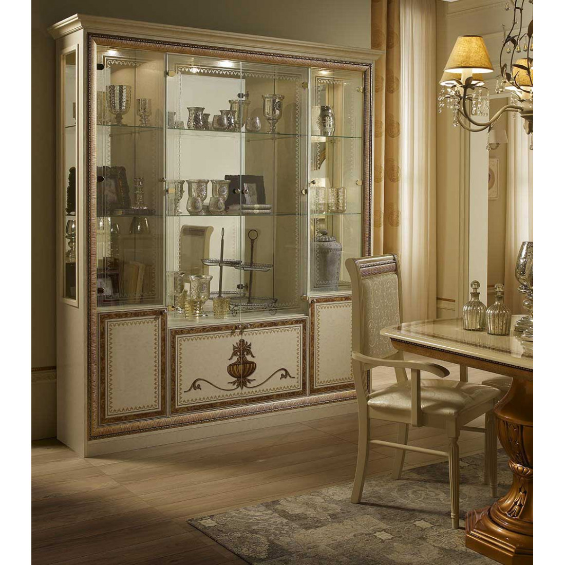 Гостиная Анита (бежевый глянец) #3 от Российской фабрики «ДИА мебель» Выполнена в цвете бежевый глянец с отделкой золотых фасадов. Классический стиль придают интерьеру неповторимую уникальность и роскошь. Изгибающиеся линии придают легкость и воздушность гостиной либо столовой. Коллекция "Анита" придаст вашему дому экстравагантность и принесет свежие нотки.