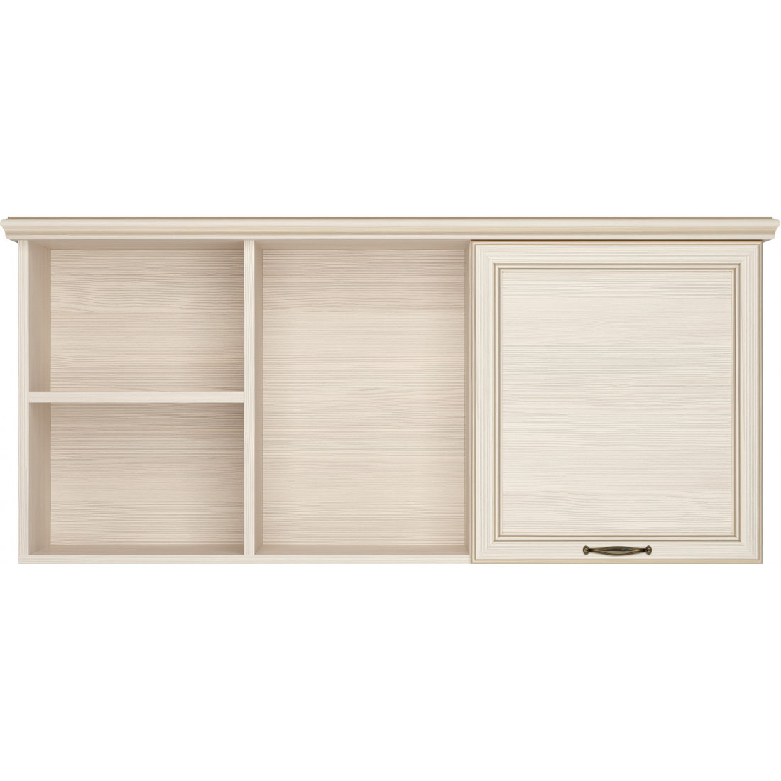 Коллекция производится в текстуре «бодега белый» с эффектом золотого патинирования. Облик «Сиены» дополняют рамочные фасады и карниз в классическом стиле, а также эффектные опоры из МДФ. Мебель комплектуются металлической лицевой фурнитурой премиум-класса в цвете «старая бронза» и надежной крепежной фурнитурой.