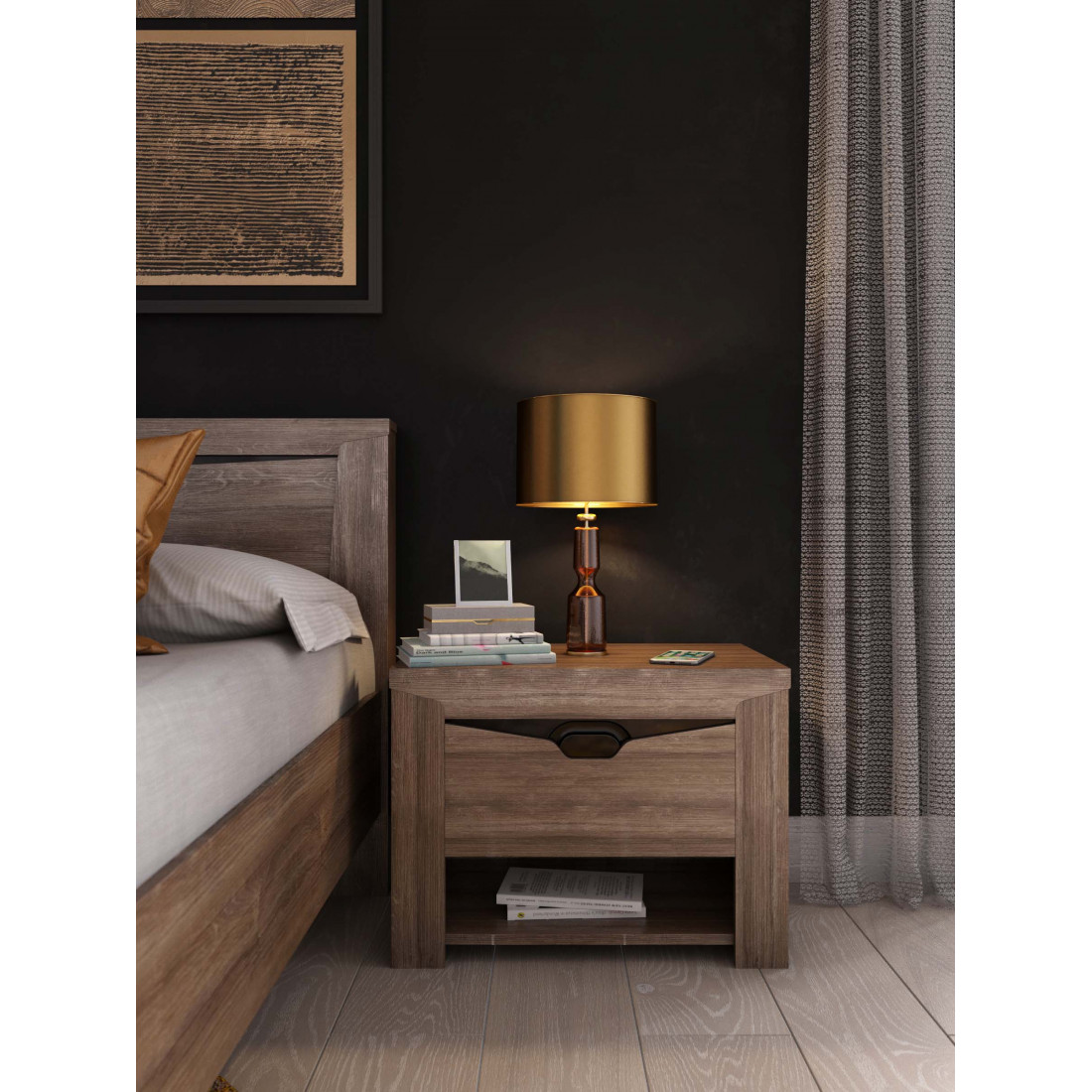 Прикроватная тумба из коллекции Соренто Дуб Стирлинг порадует ценителей лаконичных форм своими простыми, современными линиями и приятной светлой деревянной текстурой,создающей чувство покоя и комфорта в вашем доме. Выдвижной ящик поместит в себя множество полезных мелочей, которые должны быть под рукой.