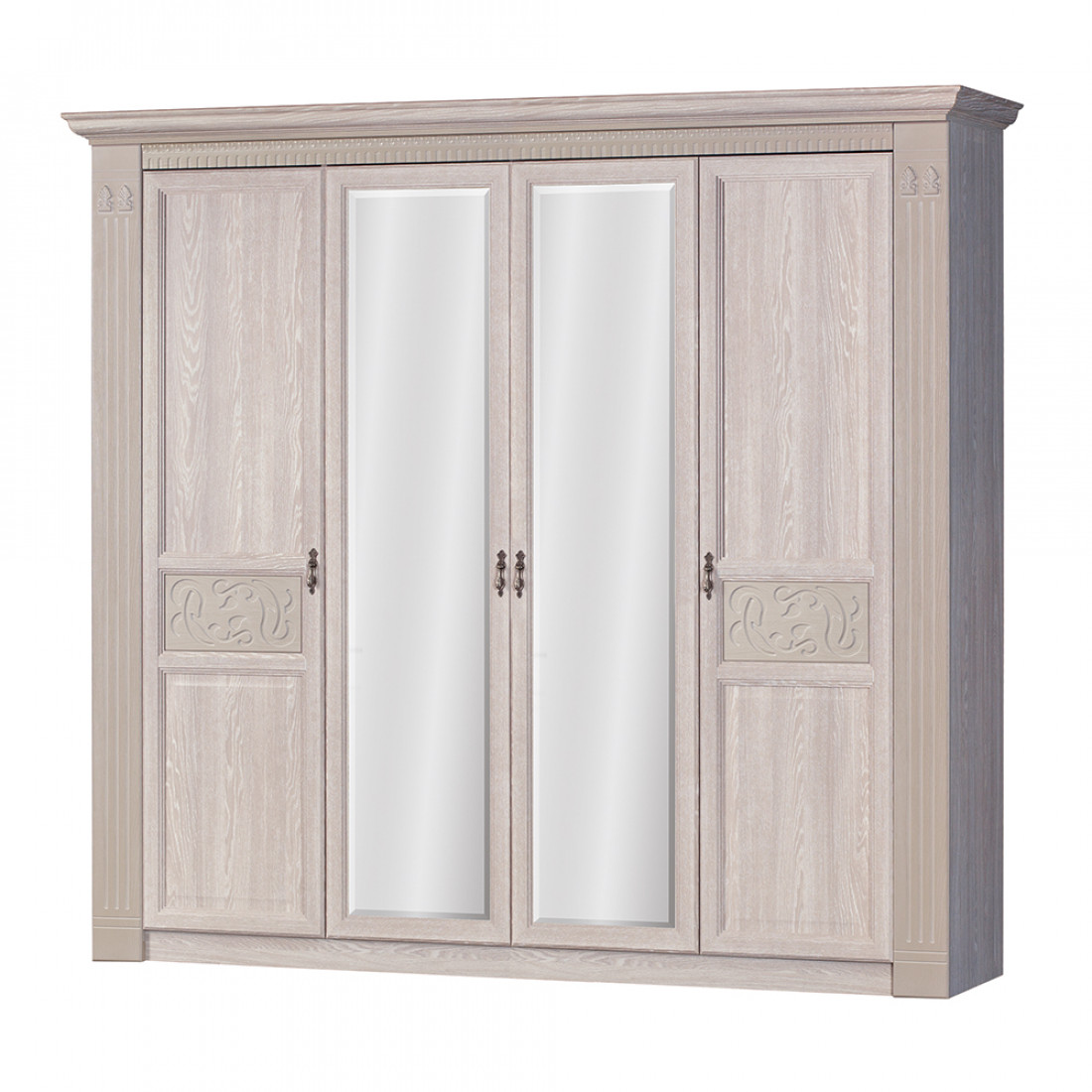 Фасады: МДФ, декор – дуб оксфорд серый, патина, зеркало с фацетом
